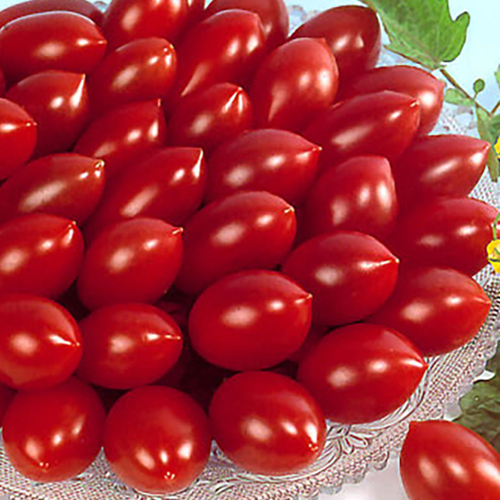 2005 ALL-AMERICA SELECTIONS AWARD WINNER - Very sweet, cherry sized tomatoes are oval shaped with a pointed blossom end and a beautiful reddish-pink color. Fruit is produced in clusters on high yielding semi-indeterminate vines, which means that plants stay more compact but continue to produce over a long season. Indeterminate. 60 days.