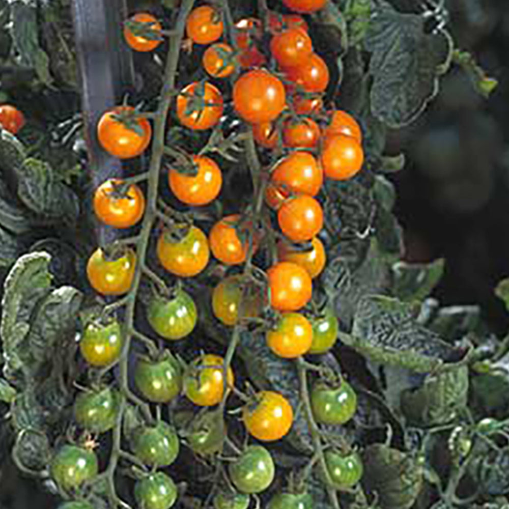 Very sweet, bright orange cherry tomatoes taste not just sugary but also fruity and delicious. Vigorous growers, these tall plants bear long clusters of fruit. Try these for a real taste treat, you won't believe you're eating tomatoes! Indeterminate. 57 days.