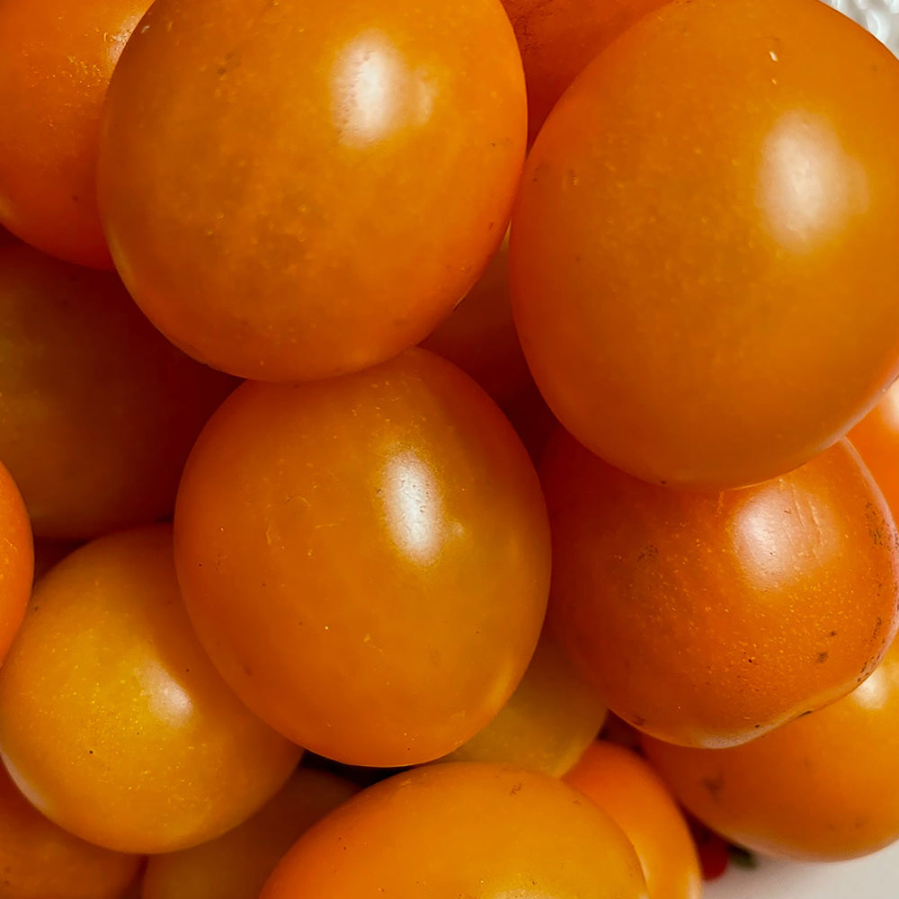 A hybrid orange cherry tomato with unbelievably good flavor and productivity. Very sweet, fruity-tasting tomatoes are borne in long clusters on vigorous plants. Many other cherry tomatoes have a tendency to crack, especially when ripe, but this one has crack resistance bred in while still keeping a thin skin. The taste of these tomatoes is such a delight that they're often picked and eaten in the garden instead of ever making it indoors. Indeterminate. 62 days.