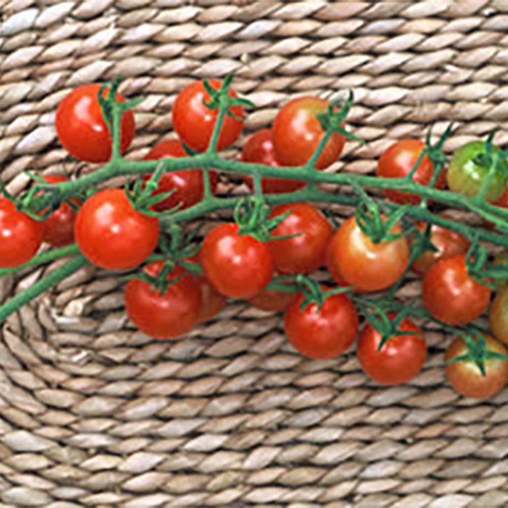 With origins in England, this bright red cherry tomato has gained popularity quickly because of its amazing taste and a 13.5 Brix (sugar measurement) rating that is exceptionally high. Even so, the flavor is well balanced with acid, so that fruit has a refreshingly tangy taste. Vigorous plants become completely loaded with bite-sized, 1/2 oz. tomatoes that will certainly be favorites for adding to salads or eating outdoors right off the vine. Indeterminate. 80 days.