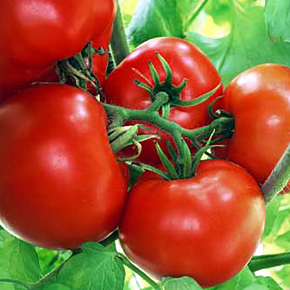 What this variety offers is a very heavy crop of good-sized, smooth red tomatoes with delicious flavor, ranging from 6 to 10 ounces. Because of their abundance and medium to large size, they could well be a mainstay of your crop, providing excellent tasting fruit for a variety of uses throughout a long season. Indeterminate. 80 days.