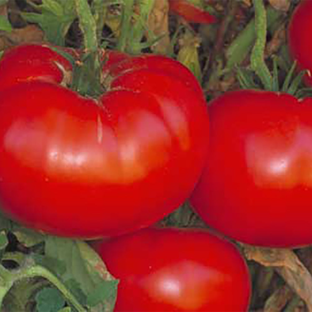Huge red fruit is smooth, nearly solid and often weighs more than 2 lbs. Excellent flavor, tiny seed cavities, and very little cracking. This is the variety that holds the world record for the largest tomato ever grown. Indeterminate. 77 days.