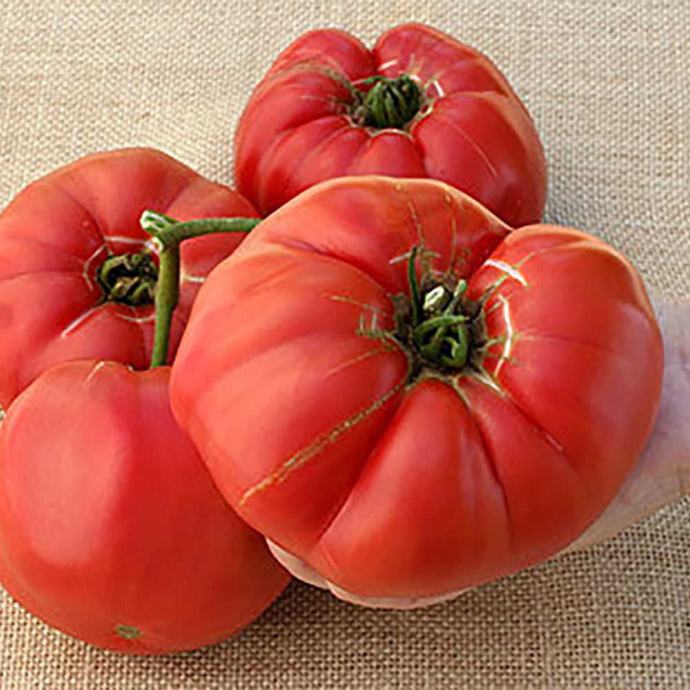 This family heirloom variety produces an abundance of deep pink tomatoes that are just huge and brimming with luscious flavor. The plant's potato-leaved foliage may remind you of Brandywine, but this one matures fruit that are earlier, larger, and more plentiful than those of Brandywine. German Giant tomatoes are smooth in shape, 2 lbs. or more, and full of that rich but sweet taste that makes a tomato scrumptious. Indeterminate. 77 days.