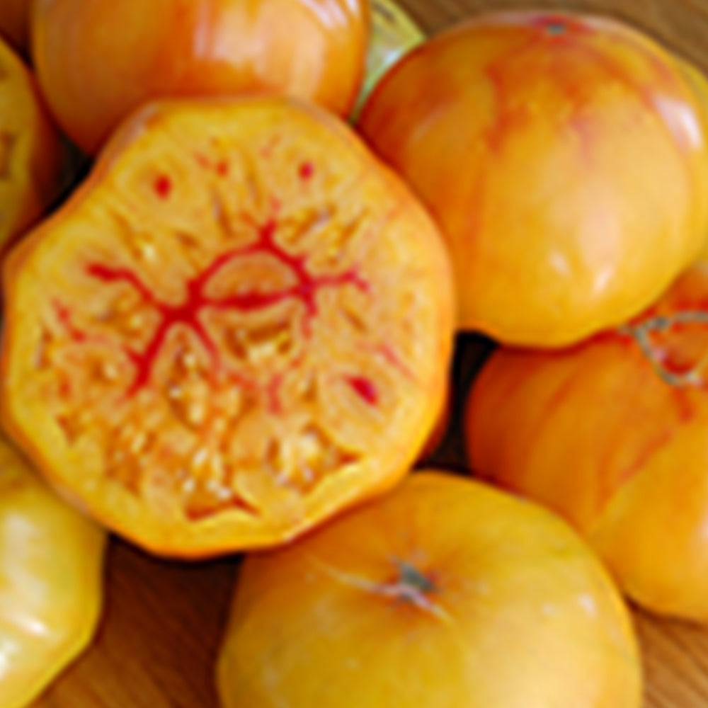 From the seed of the late tomato collector Ben Quisinberrry, this classic heirloom variety has gorgeous one to one and a half pound yellow and red striped fruit. Winner of many modern taste tests, it was listed in Quisinberry's 1976 seed list as "the sweetest tomato you ever tasted and a gourmet's joy when sliced." Introduced as Ruby Gold and renamed by Mr. Quisinberry. Indeterminate. 80 days.