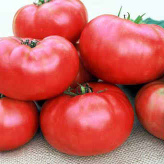 This large, potato-leaved dark pink tomato is fast becoming a favorite of gardeners across the country. The 1 to 2 pound pink-red beefsteak fruits have luscious, full tomato flavor that features a good balance of acidity and sweetness. Vigorous vines are very productive, which is special for a potato-leaved plant. Indeterminate. 80 days.