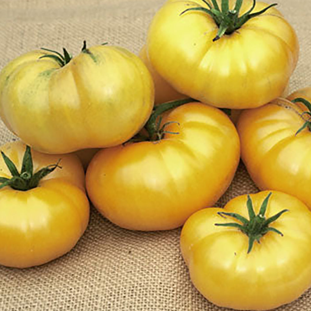 This is a delightful small yellow beefsteak tomato that matures so early it will be one of the first varieties to ripen in your garden. Beautifully smooth, lemon yellow fruit weighs about 8 ozs. and is very flavorful, rich but pleasantly sweet with a delicious hint of citrus. Heirloom variety from Russia. Our stock seed is from Craig Le Houllier. Indeterminate. 70 days.