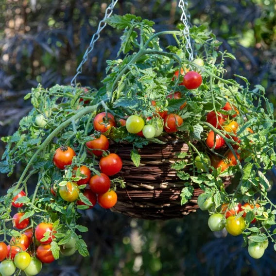 Cherry Blast hybrid won the Retail Choice Award because it is perfect for hanging baskets, containers, and small growing spaces. Plus it has great flavor, and luxury sweetness (6% brix). Disease resistances include Late Blight and ToMv 1,2. Fruit are one inch in size (like Sweet Chelsea), and the plants tend to produce over longer periods than similar varieties. Determinate 47 days.