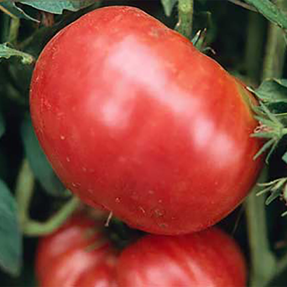 Deep pink beefsteak fruit have excellent, sweet flavor and are meaty with few seeds. Tomatoes weigh between 10 and 16 ozs. and are fairly smooth in shape. Potato- leaved plants produce these large, delectable tomatoes early in the season. Heirloom variety. Indeterminate. 78 days