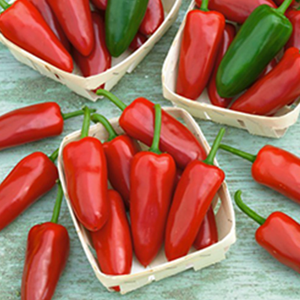 Hernandez is a hybrid Fresno type pepper that has a lot in common with a jalapeno. The fruit are conical, 2-3 inches in length, with thick flesh that can be eaten fresh, grilled, or minced in salsa. The flavor is tangy and smoky with a hint of sweetness. Plants reach 22 to 24 inches in height and the fruit have medium pungency. 75 days.