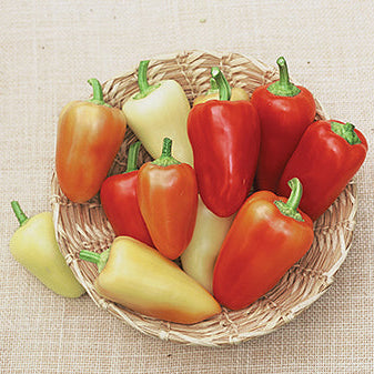 An improved Santa Fe Grande type that offers earliness, superior size, milder flavor, and higher yields. Fleshy peppers, 4 in. long and 2 in. wide, ripen from yellow to red and have 500 to 600 Scoville units. Use them for salsas, sauces, and pickling, or try them stuffed and then grilled. Vigorous plants set fruit continuously throughout the season. 66 days.