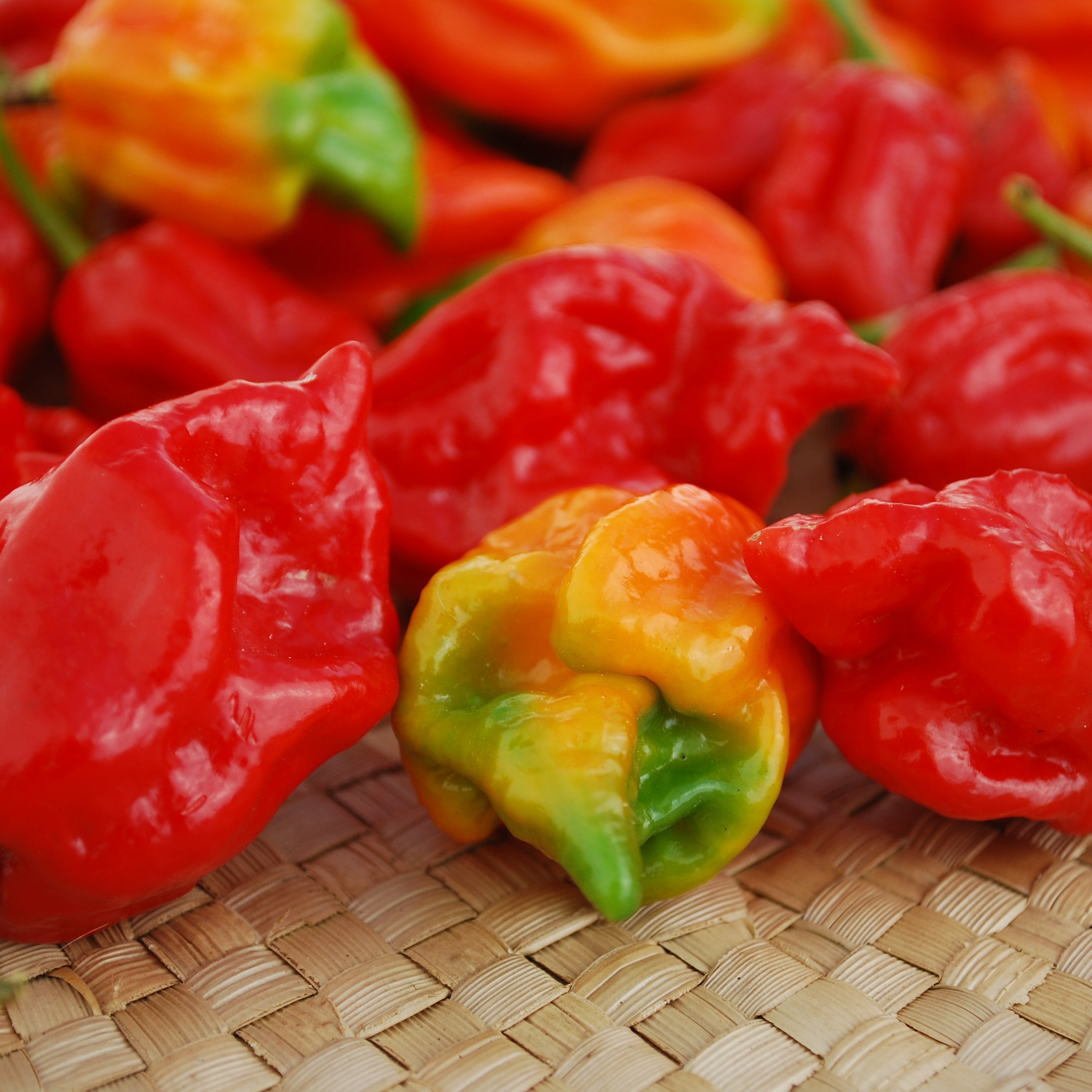 This extremely hot pepper (1.2 million scoville units) with some individual plants reaching 2 million scoville units. It was the world record holder in 2012. Fruit are blistering hot with a fruity background flavor. Be sure and use caution when handling fruits, and make sure children do not handle them. A native of Trinidad and Tobago, the pointed tip of the fruit looks like a scorpion stinger. Germination takes a long time. 90 days. 70% germination.